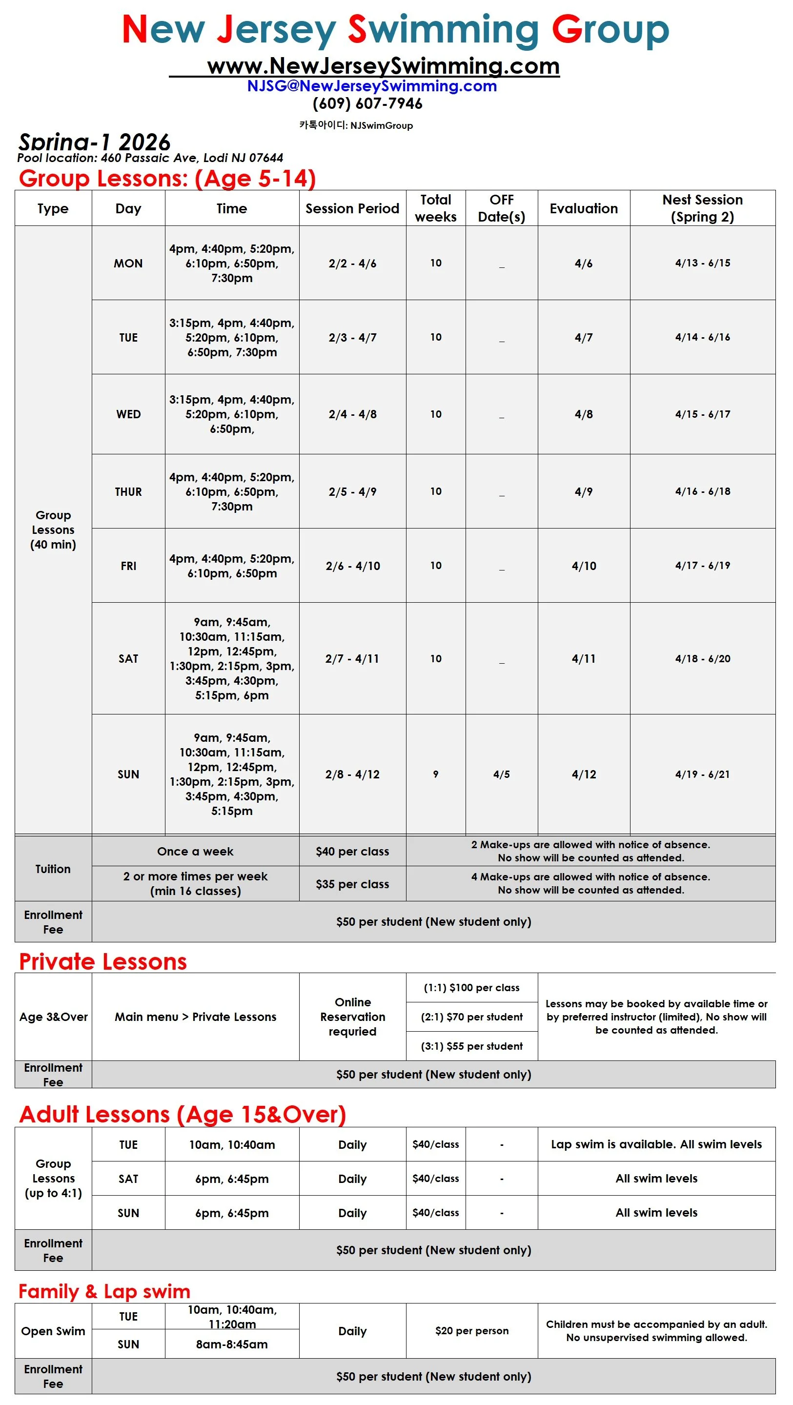 NJSG does not guarantee specific make-up times and reserves the right to cancel, modify, or reschedule.
