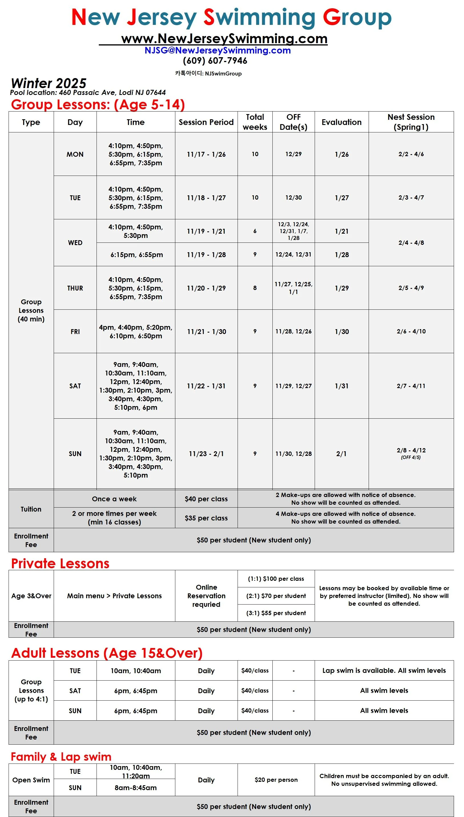 NJSG does not guarantee make-ups schedules and has a right to cancel / modify / reschedule.