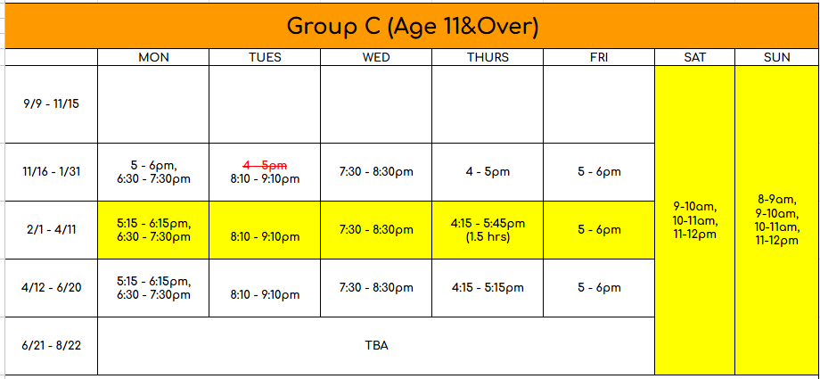 Practice reservations (Feb-April) will be available on or after Jan 16th 2026